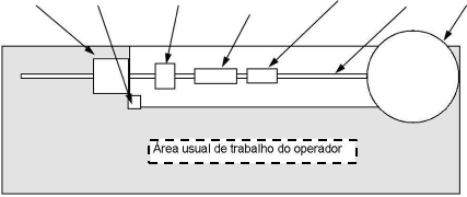 Normalmente, o operador estará na área tracejada em torno da máquina