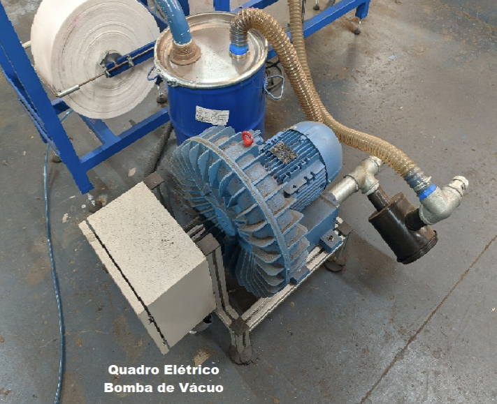 A bomba de vácuo tem quadro elétrico próprio e os cabos devem ser conectado no quadro elétrico da máquina. Os cabos de energia 220V Trifásico devem ser conectados ao quadro elétrico da máquina.