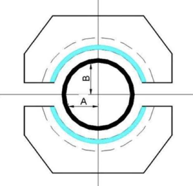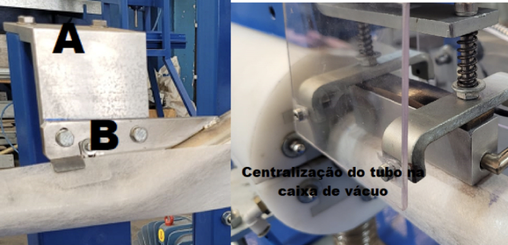 A posição do tubo de alimentação na câmara de vácuo deve estar centralizado, para que o papel deslize suavemente e não rotacione ao longo do tubo. Para fazer o alinhamento se ajusta a posição através dos parafusos A e B.