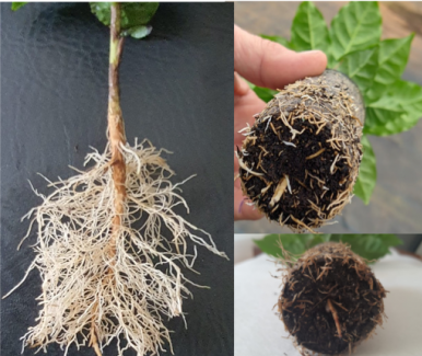 Veja as mudas de café produzidas no Biopot, com alta densidade de raízes laterais e compactação do substrato, garantem produção de qualidade com a tecnologia Khrin.